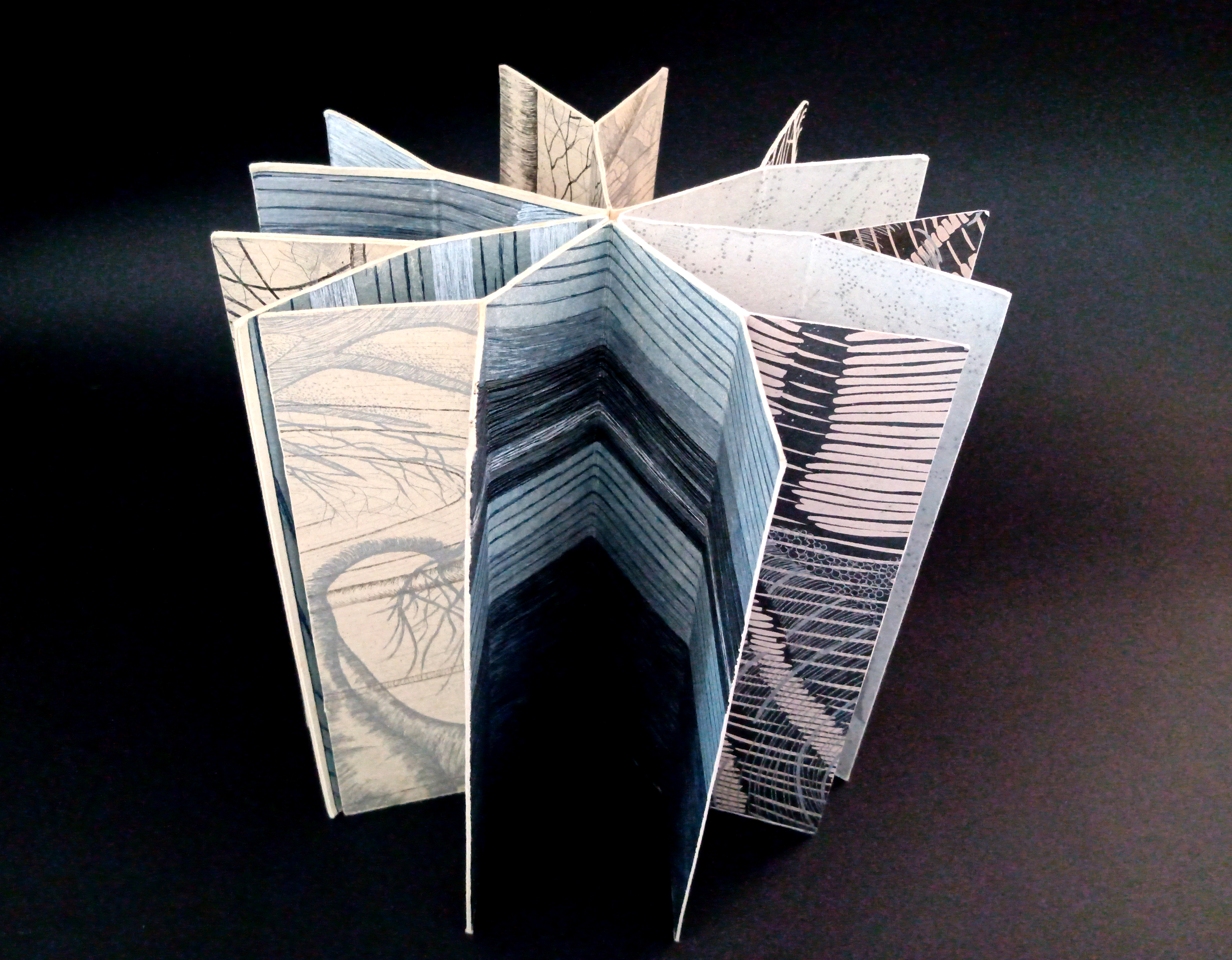 Then in 2008 I used the shape to make a neverending book with my etchings and linocarvings from Incidental Geometry.